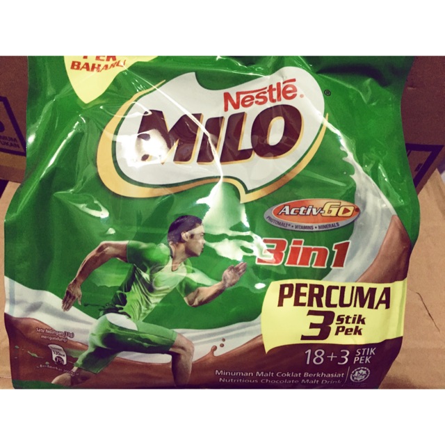 Minuman milo 3in1. Isi 18pack gratis 3pack. Exp apr18