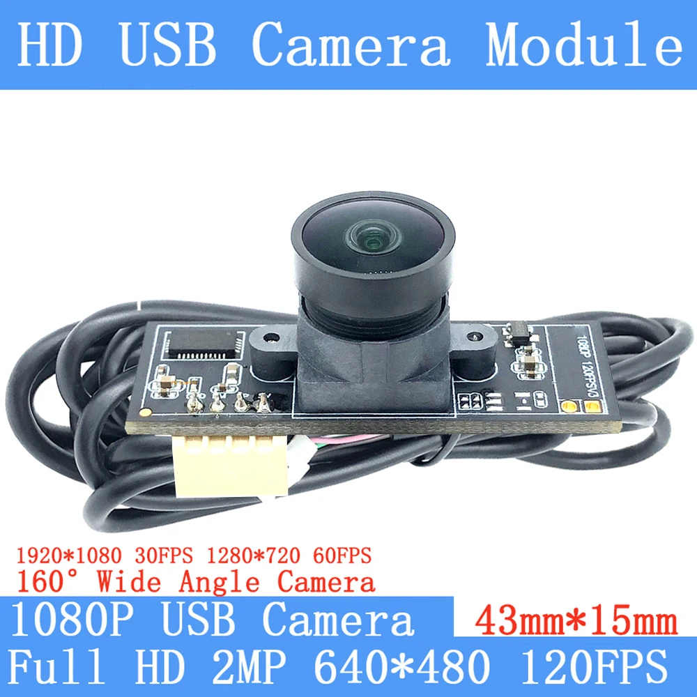 Min HD 2MP 160° Wide Angle Surveillance Webcam 1080P MJPEG 120fps High Speed CCTV Linux UVC Android USB Camera Module