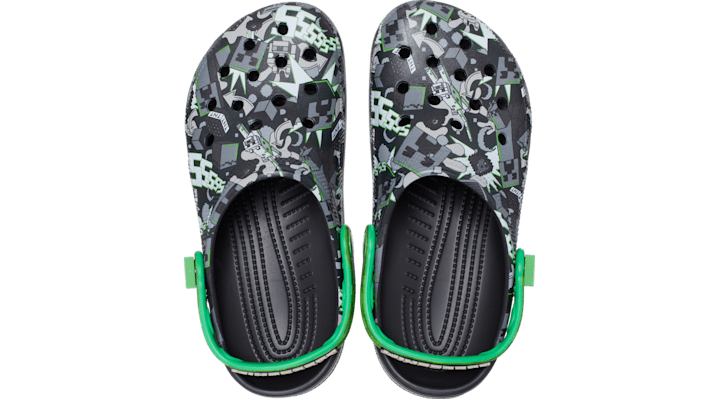 Sssssss...Boom! You can’t tame those pesky creepers but you can finally get a hold of 'em with this creeper-inspired look that’s exploding with style. © 2023 Mojang AB. All Rights Reserved. Minecraft, the MINECRAFT logo and the MOJANG STUDIOS logo are trademarks of the Microsoft group of companies. Minecraft Classic Clog Details: Choose your mode in the new Minecraft x Crocs AR games! Scan the creeper rivet with your phone to open a link where you can play two free Minecraft x Crocs Augmented Reality games. Choose Creator Mode and build structures made of Jibbitz™ in the real world. Choose Survival Mode and you’ll traverse a virtual grid on your floor as you collect Jibbitz™ while avoiding lava. Learn more at: www.chooseyourmode.net Includes a Minecraft logo Jibbitz™ charm on backstrap Creeper rivet Incredibly light and fun to wear Water-friendly and buoyant; weighs only ounces Ventilation ports add breathability and help shed water and debris Easy to clean and quick to dry Pivoting heel straps for a more secure fit Customizable with Jibbitz™ charms Iconic Crocs Comfort™: Lightweight. Flexible. 360-degree comfort.