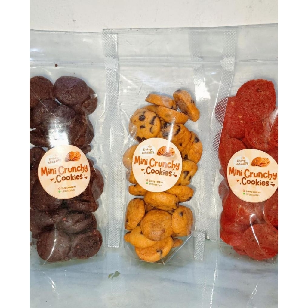 Cruncy cookies original, double choco dan red velvet bertaburan coklat terbuat dari bahan2 premium dengan rasa yang pas antara manis, gurih, asin
