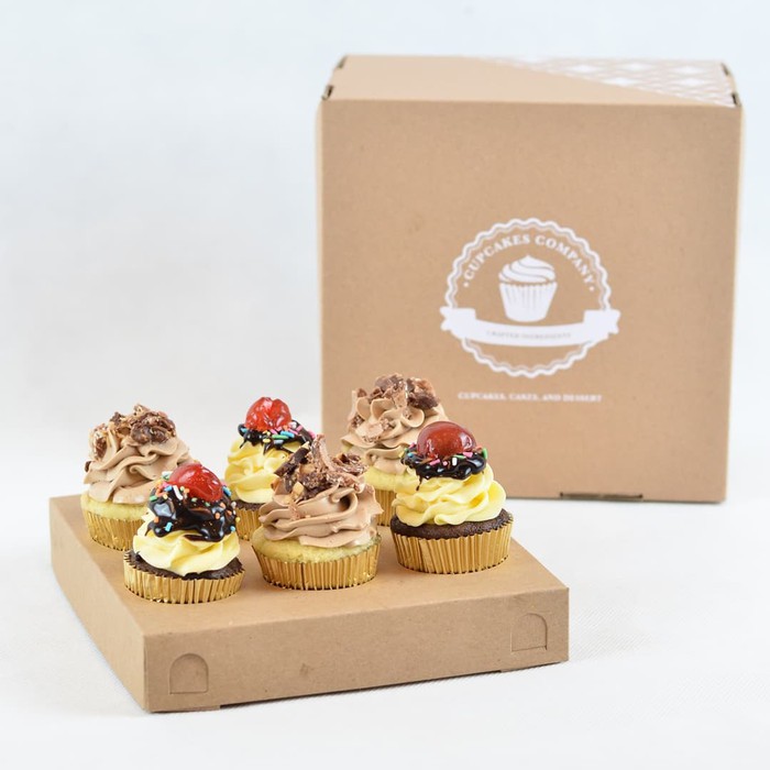 Produk Best Seller dari Cupcakes Company. 1 box isi 6 mini cupcakes dengan 1 pilihan rasa. Jangan lupa menuliskan 1 rasa pilihan kamu di kolom pesan (jika tidak diisi akan kami kirimkan rasa secara random). Pilihan rasa: Ovomaltine Addict, Strawberry Cheese, Cappuccino Sip, Red Velvet, Blue Velvet, Toblerone Volcano, Chocolate Monster, Lemony Snickett, The Dark Mistress, Moonwalker, Intoxicated, Greenie Camelia, Charlie Brown, Roger Rabbit, Mr. Love, Rainbow, Kitkat Ebony & Kitkat Ivory. Pengiriman hanya berlaku untuk wilayah Jadetabek dengan maksimum waktu melakukan pesanan adalah pukul 15.00 (Jika diatas jam tersebut pesanan akan diproses esok hari).
