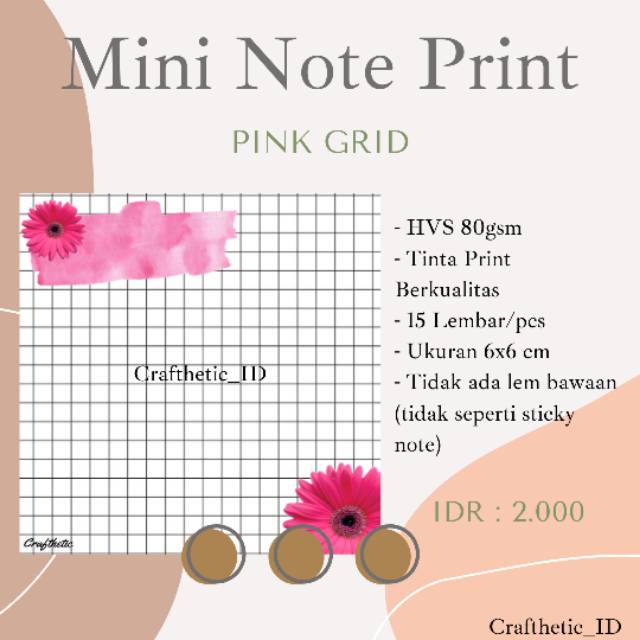 Terbuat dari kertas HVS 80 GSM yang lebih tebal dari kertas HVS biasa. Tidak ada lem bawaan seperti sticky notes, jadi ditempelinnya bisa pake washitape/lem yah. Note ini memudahkan kalian menulis sesuatu yang singkat bisa rumus, quote atau apapun itu sesuai kebutuhan kalian. Design dan gambar print yang dihasilkan pun berkualitas loh.