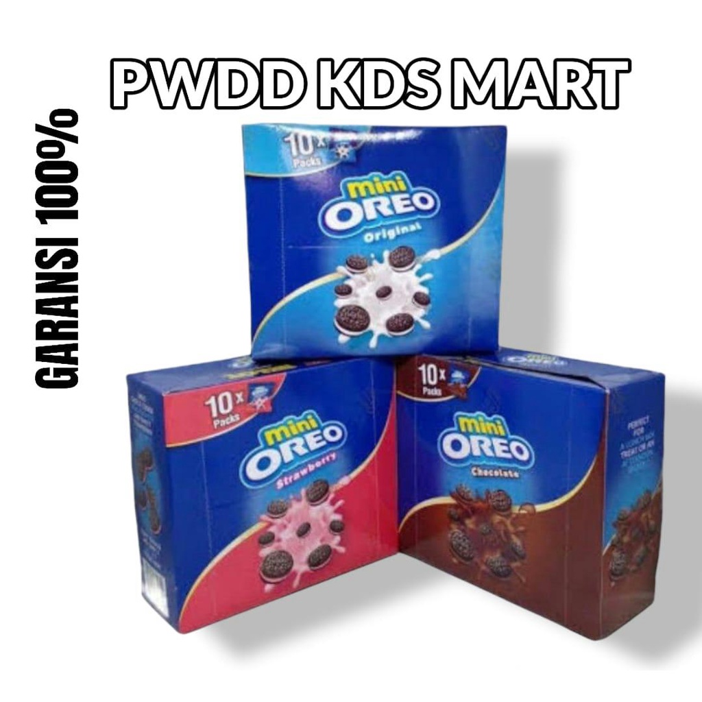 Biskuit Oreo mini dengan krim yang lembut, serta renyah dan lezat. Oreo Mini merupakan sebuah makanan ringan berbentuk biskuit yang dipack dalam bentuk Sachet. cocok dan praktis untuk dibawa sebagai cemilan saat santai bagi anak kecil hingga dewasa dan bisa dibikin seru karena bentuknya yang mini.