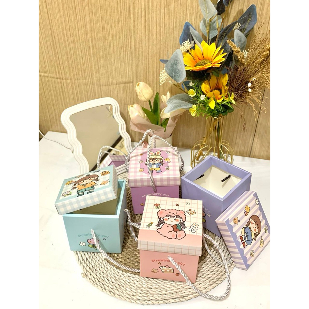 Mini Paper Box dengan kualitas kertas premium tidak mudah letoy. Dilengkapi dengan tali pada kedua sisi sehingga mudah di bawa. Design dan warna yang gemas dan lucu. Cocok sebagai tempat pemberian gift-gift kecil berupa aksesoris atau barang kecil lainnya.