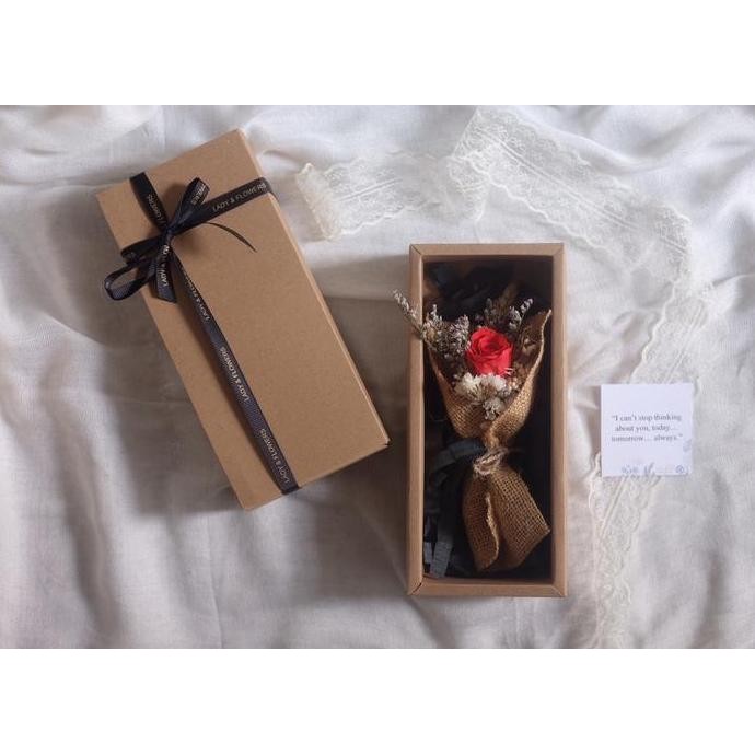 Bunga kering dan preserved rose import - termasuk box dan kartu ucapan (20*8*5.5)cm