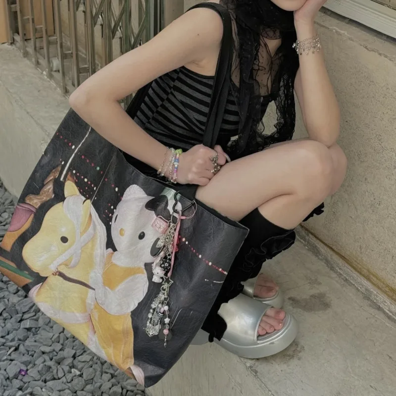Miniso печатная сумка Hellokitty Kawaii на плечо, универсальная большая сумка большой емкости, милая мультяшная сумка для хранения Y2k, женская сумка в стиле аниме
