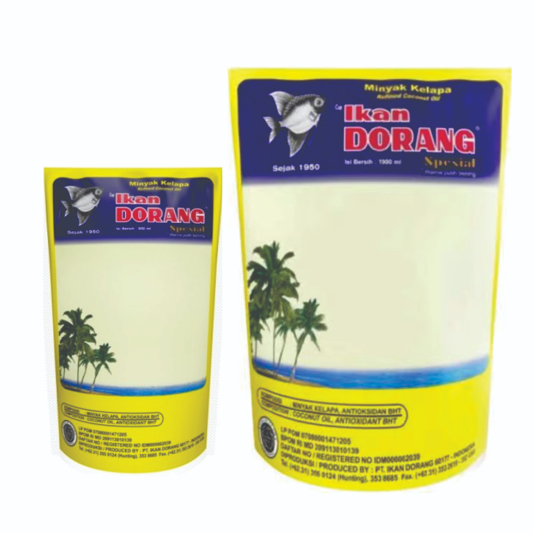 Minyak goreng Ikan Dorang Spesial diproses dari bahan baku kelapa kopra berkualitas tinggi. Warna minyak goreng yang putih bening, dan tidak cepat menghitam sangat cocok untuk segala kebutuhan masak memasak.