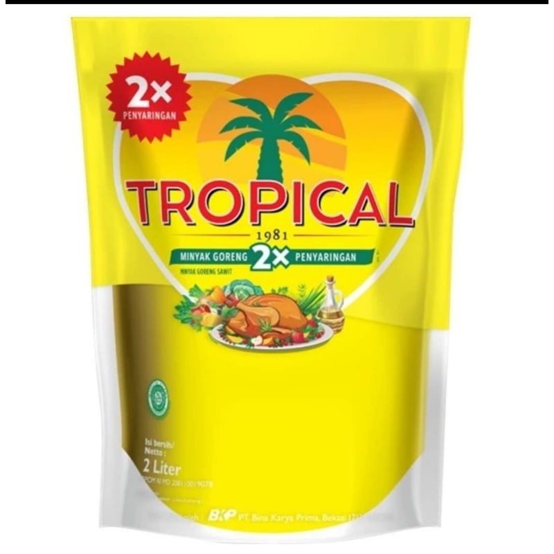 TROPICAL Minyak Goreng Pouch 2 L merupakan minyak goreng dari kelapa sawit pilihan yang diproses dengan dua kali penyaringan sehingga menghasilkan asam lemak tak jenuh dan menjadikannya tetap jernih, lebih tahan panas, dan tidak mudah tengik. Minyak goreng Tropical mengandung asam lemak tak jenuh (omega 9) yang mampu menurunkan kolesterol darah. Minyak goreng Tropical juga mengandung vitamin E sebagai antioksidan dan pro vitamin A. Tersedia dalam kemasan pouch 2 liter.