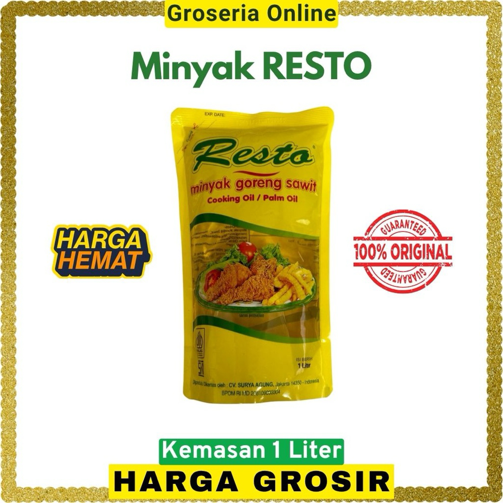 Minyak Goreng RESTO kualitas Premium & Jernih, telah banyak digunakan oleh Restoran, Cafe, Warteg, Paket Sembako & Keperluan Rumah Tangga.
