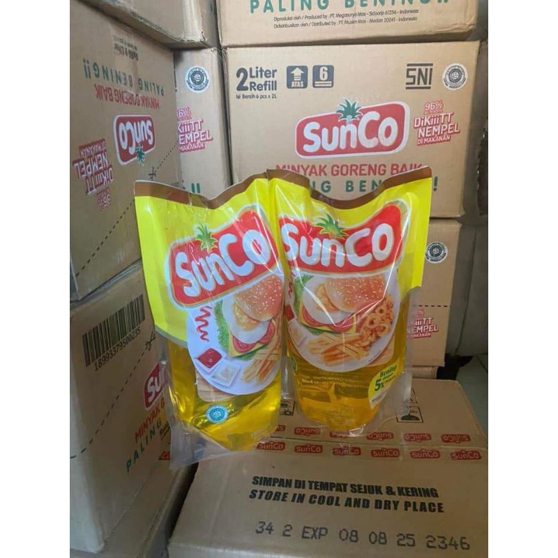 Sunco Refill 2L Diproduksi dari buah kelapa sawit segar pilihan dan difortifikasi Vitamin A.