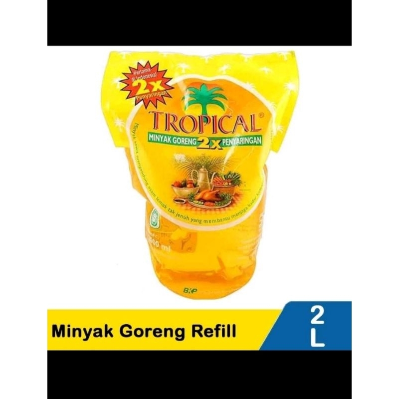 TROPICAL Minyak Goreng Pouch 2 L merupakan minyak goreng dari kelapa sawit pilihan yang diproses dengan dua kali penyaringan sehingga menghasilkan asam lemak tak jenuh dan menjadikannya tetap jernih, lebih tahan panas, dan tidak mudah tengik. Minyak goreng Tropical mengandung asam lemak tak jenuh (omega 9) yang mampu menurunkan kolesterol darah. Minyak goreng Tropical juga mengandung vitamin E sebagai antioksidan dan pro vitamin A. Tersedia dalam kemasan pouch 2 liter.