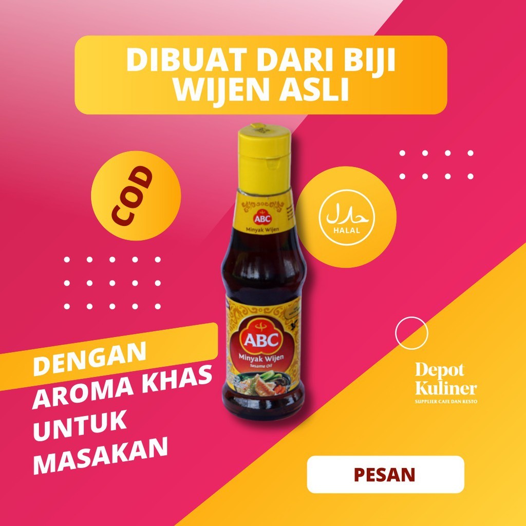 ABC Minyak Wijen dibuat dari biji wijen asli dan diproses secara modern untuk resep terbaik minyak wijen dengan aroma yang khas untuk anda kreasikan masakan anda dirumah.