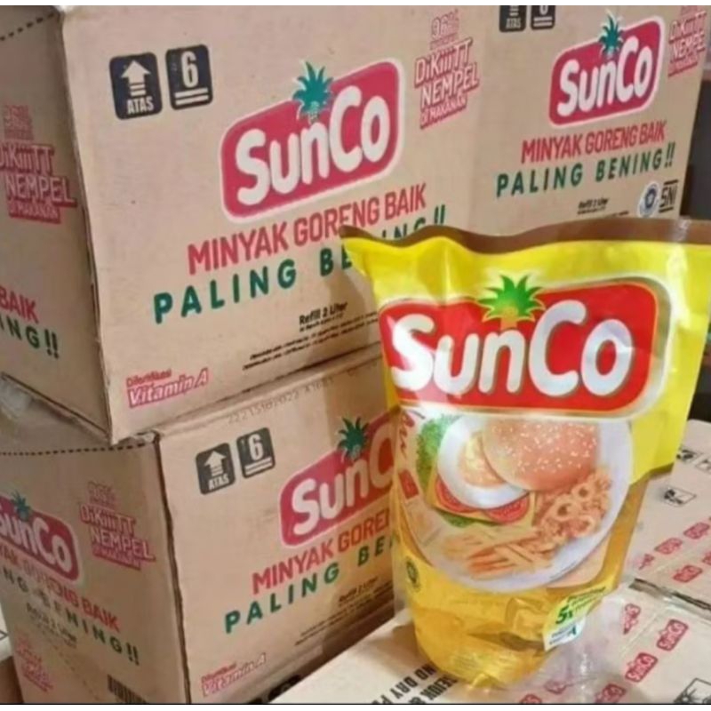 SunCo Minyak Goreng 2 L adalah minyak goreng yang diproduksi dari buah kelapa sawit segar pilihan dan difortifikasi dengan vitamin A. Diproses dengan teknologi mutakhir melalui 5 tahap pemrosesan, yakni 3 kali proses pemurnian dan 2 kali proses penyaringan. Menghasilkan minyak goreng yang baik dan