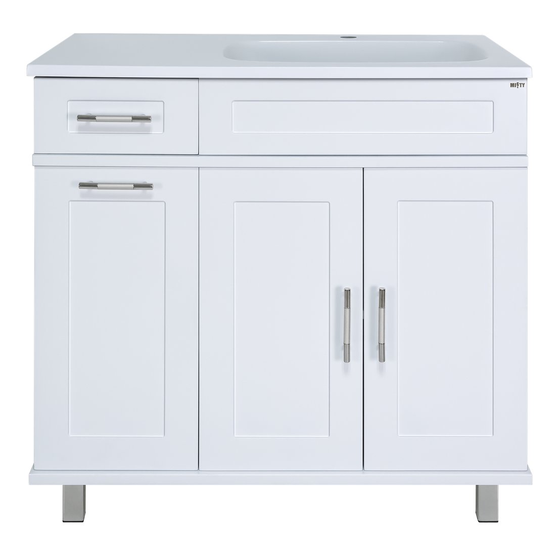 Misty Купер - 90 Тумба напольная с Б/К правая, белая эмаль - П-Куп01090-012БкП