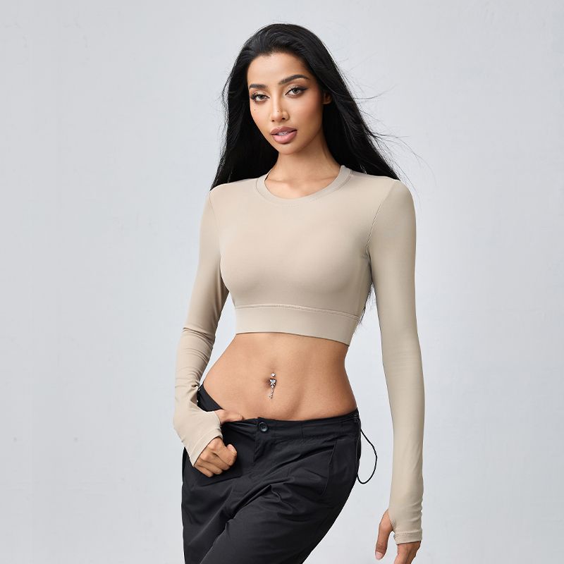 Mitaogirl Одежда для йоги Женская С вырезами на спине Красивая спина Облегающая Сексуальная Спортивная С длинным рукавом Стиль гяру Эластичная Одежда для тренировок Khaki L