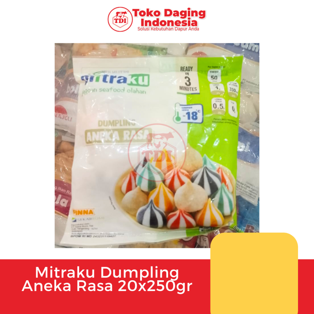 MITRAKU Dumpling Aneka Rasa bisa direbus atau digoreng. Terbuat dari ikan pilihan yang digiling halus dan di campur sempurna dengan bumbu spesial, tidak kempes, gurih dan lembut.