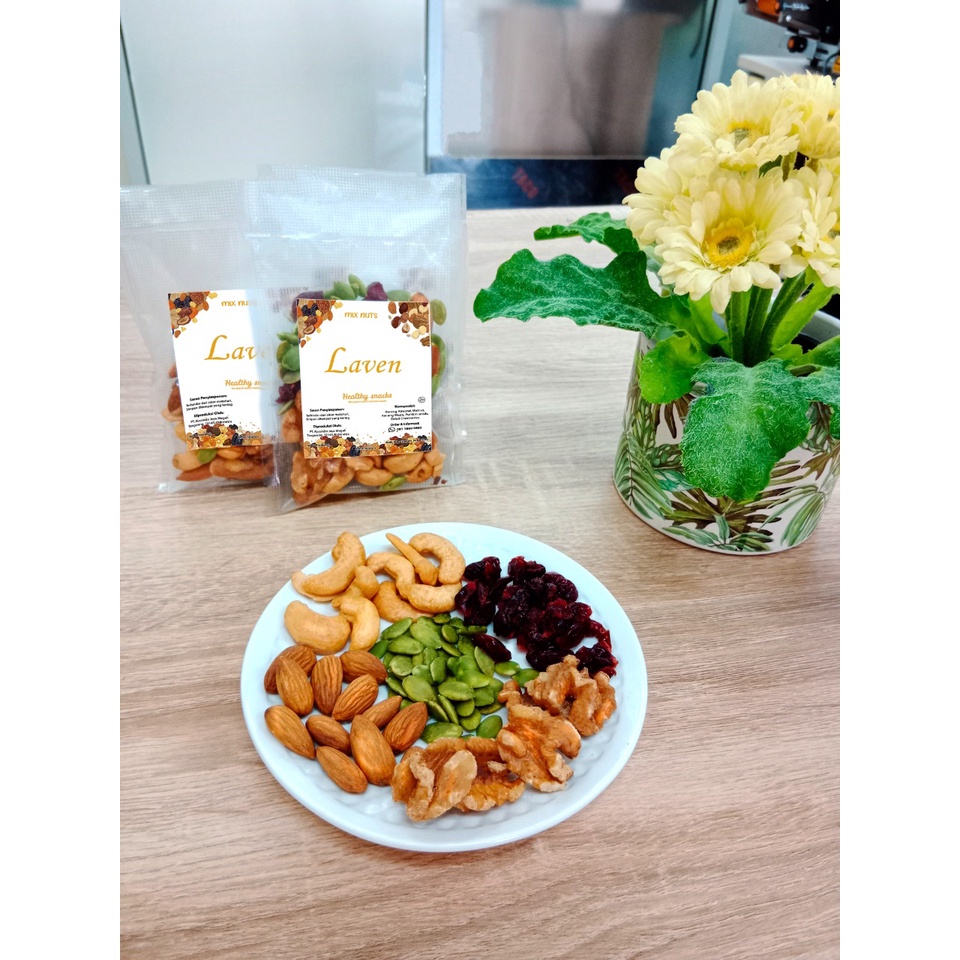 Mix nut adalah snack sehat dari kombinasi kacang - kacangan. Snack sehat ideal bernutrisi tinggi memberikan energi instant. Cocok dimakan setelah berolahraga atau penganjal perut yang rendah lemak di saat lapar.