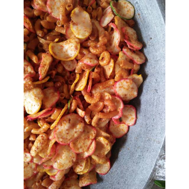 Seblak kering ala temennasi ini isinya mix, makaroni dan kerupuk bawang. Rempahnya terasa, wangi kencur dan daun jeruk. Cocok untuk teman nasi, taburan mie, atau sebagai cemilan.