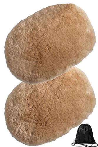 Miya Варежки из овчины для мытья автомобиля, Набор из 2 штук, 100% австралийская шерсть, Щетка из овчины, Профессиональная швабра для мытья автомобиля (Верблюжий цвет)