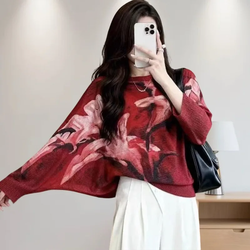 Miyake плиссированная осень 2022, новый топ с длинными рукавами и принтом «летучая мышь», женская свободная темпераментная повседневная плиссированная футболка размера плюс, эластичная