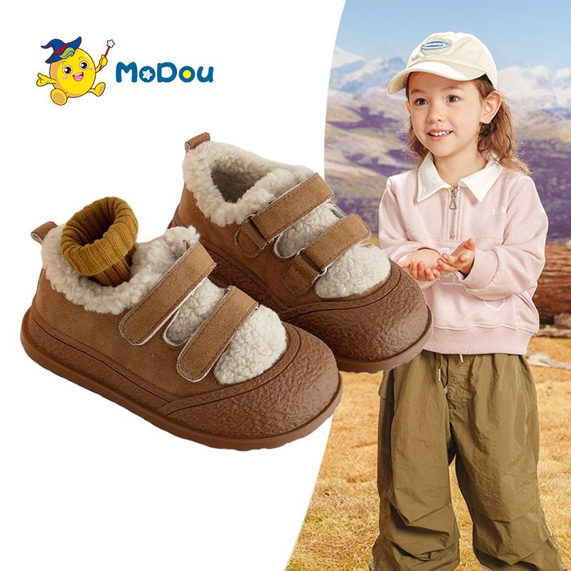 Mo Dou, осенне-зимняя хлопковая обувь для мальчиков и девочек, утепленная плюшевая теплая обувь на плоской подошве, уличная обувь в стиле ретро с мягкой подошвой