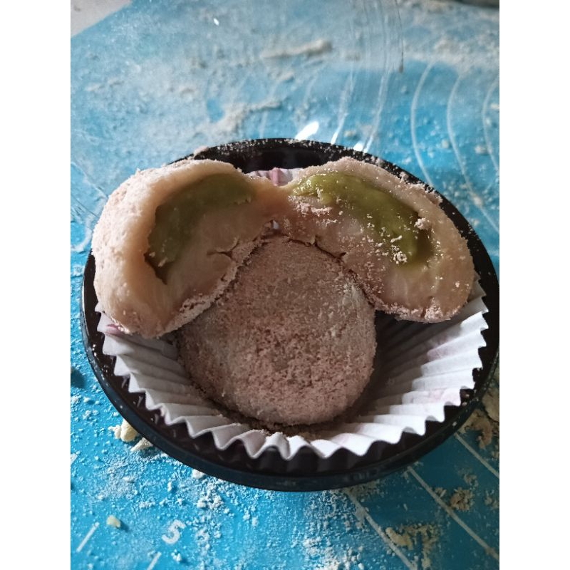 Mochi greentea . dengan isian pasta Greentea didalamnya yang lumer.