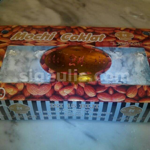 Banyak mochi yang beredar, namun harus kita akui, bahwa mochi dari Sukabumi lah yang paling terkenal diantara mochi-mochi lainnya. Di Sukabumi sendiri banyak penjual mochi bertebaran di mana-mana. Namun dari sekian banyak penjual mochi yang ada, mochi merek Lampion lah yang paling terkenal. Selain karena merek ini adalah pioner pembuat mochi, harus diakui juga mochi ini memang paling enak rasanya dan memiliki tekstur halus dan kenyal. Rp. 55.000 Menerima pesan antar/delivery dengan ketentuan : *Free untuk wilayah kota Sukabumi dengan pemblanjaan min Rp. 100.000 * untuk luar kota menggunakan ekspedisi jne, wahana, indah cargo d* pemesanan bisa melalui : Tlp/sms/wa: 081911760753 email : sigeulis.sukabumi@gmail.com
