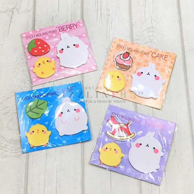 Molang Sticky Notes are Ready @llunasol.co Lucu, designnya juga simpleee~ Ready dlm 4 gambar berbeda: Berry, Cake, Leaf and Horse