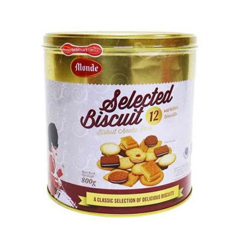 Monde Selection Biscuit Gold Assorted 800 g adalah biskuit aneka rasa dengan 12 varian biskuit didalam kemasan kaleng. Cocok untuk disajikan untuk momen kebersamaan bersama teman dan keluarga. Tersedia dalam kemasan kaleng 800 g.