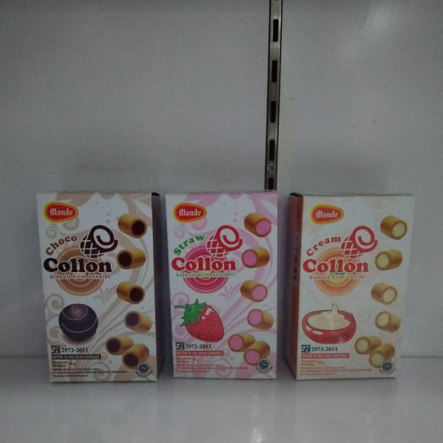 Ini adalah biskuit roll dengan 3 variasi cream, yaitu collon strawberry, collon choco dan collon cream vanilla