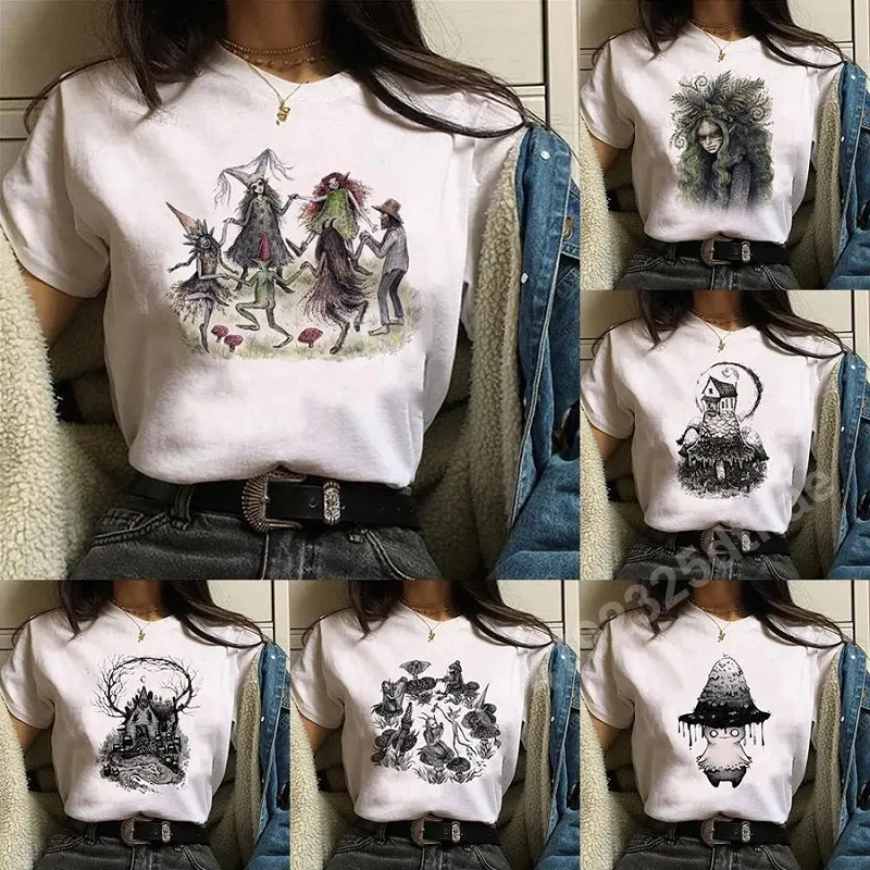 Halloween Graphic T-Shirt Retro Harajuku Women's Clothing T Shirt Cartoon Funny Tees Short Sleeve O-Neck Tshirt Lady Casual Tops