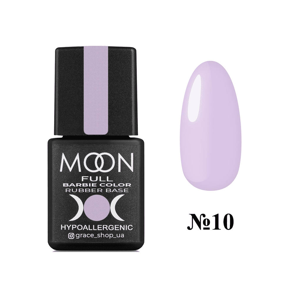 Moon Full Barbie Color Rubber Base № 10 - камуфлирующая цветная база (светло-фиалковый, эмаль), 8 мл
