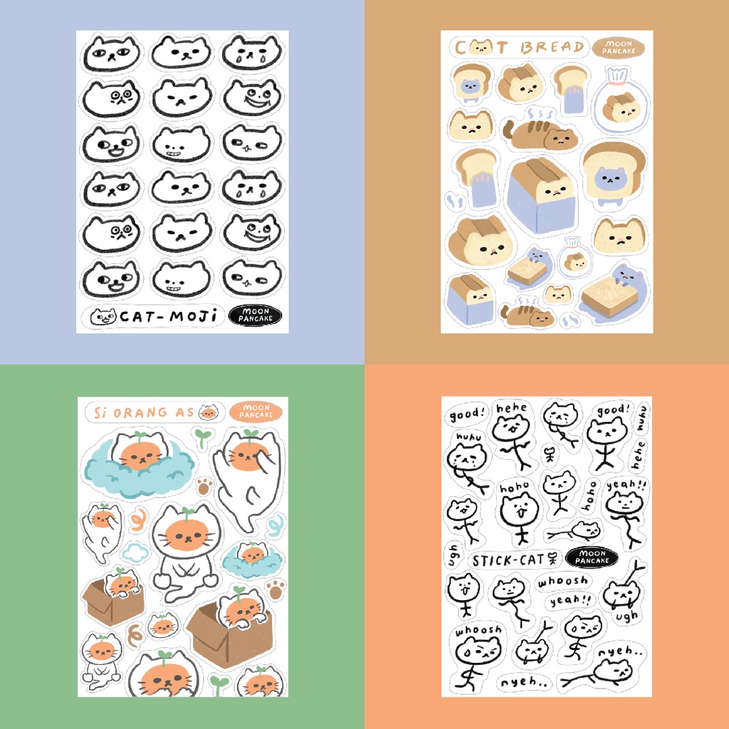 This cat sticker bundle contains 4 sheets of stickers consisting of: