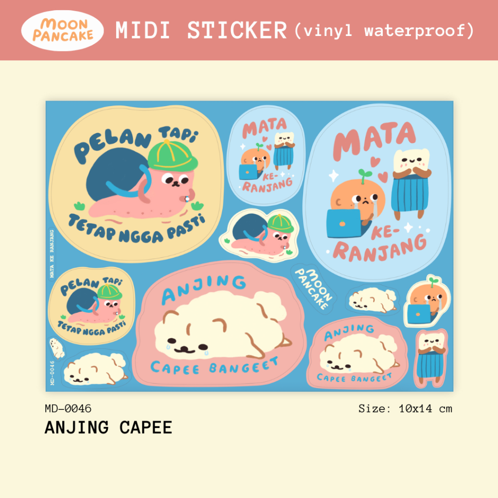 stiker anjing yang sedang cape banget dan beberapa karakter lainnya