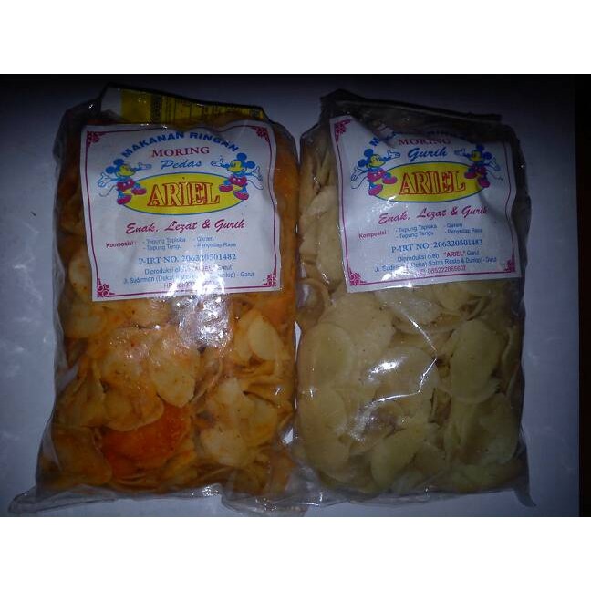 makanan ringan moring ariel garut terbuat dari tepung rasa original dan pedas