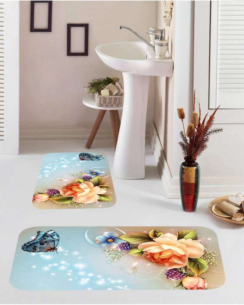 Mosimoso Домашняя страница BM035 Коврик для ванной с цифровой печатью и подошвой в горошек 100x60 cm синий