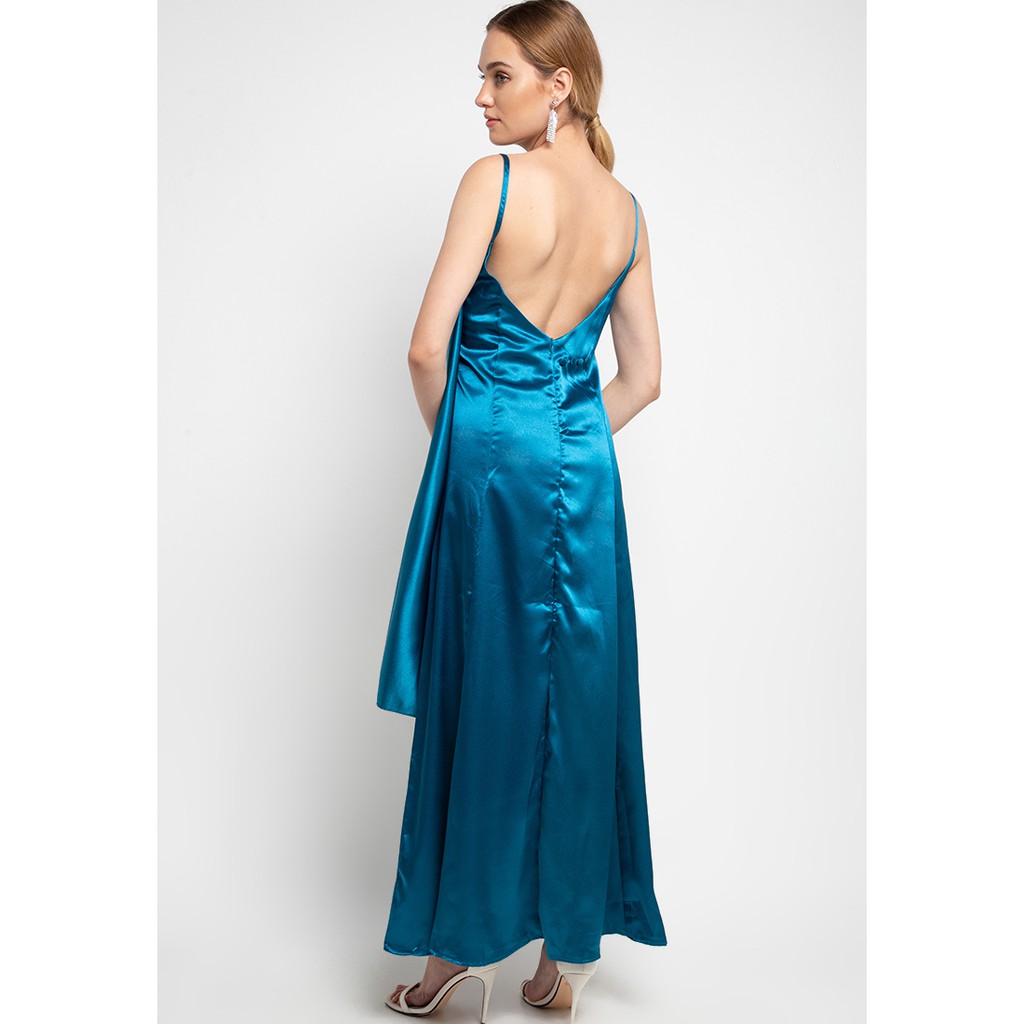 Crafted from luxurious satin, the definitions of elegant and timeless design, a dazzling gown that catches all eyes without trying too hard. Drapery detail on your left sleeve, creating a classic look that falls on your shoulder followed with subtle colors suitable for your evening wear.