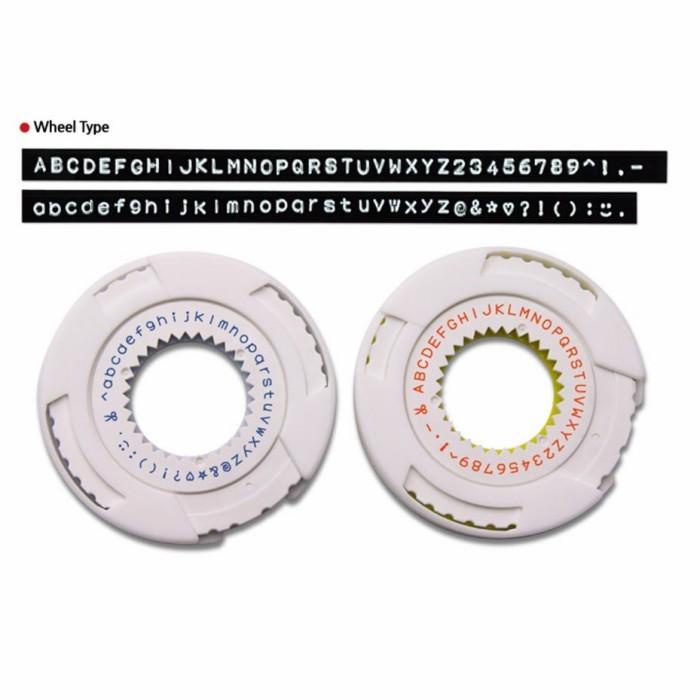 PACKAGE : Blister Pack 2 Wheel (Kombinasi Huruf Kapital dan kecil, Angka dan simbol) free 1 roll refil dalam 1 paket mesin