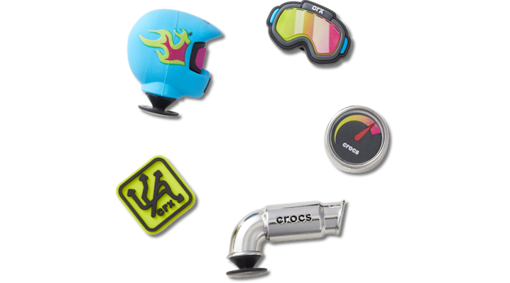 Pop some personality into your shoes with these Moto Racer 5 Pack Jibbitz™ charms. They’re the perfect addition to your favorite pairs of clogs, slides, and more.Not a toy. Not intended for children under 3 years of age.