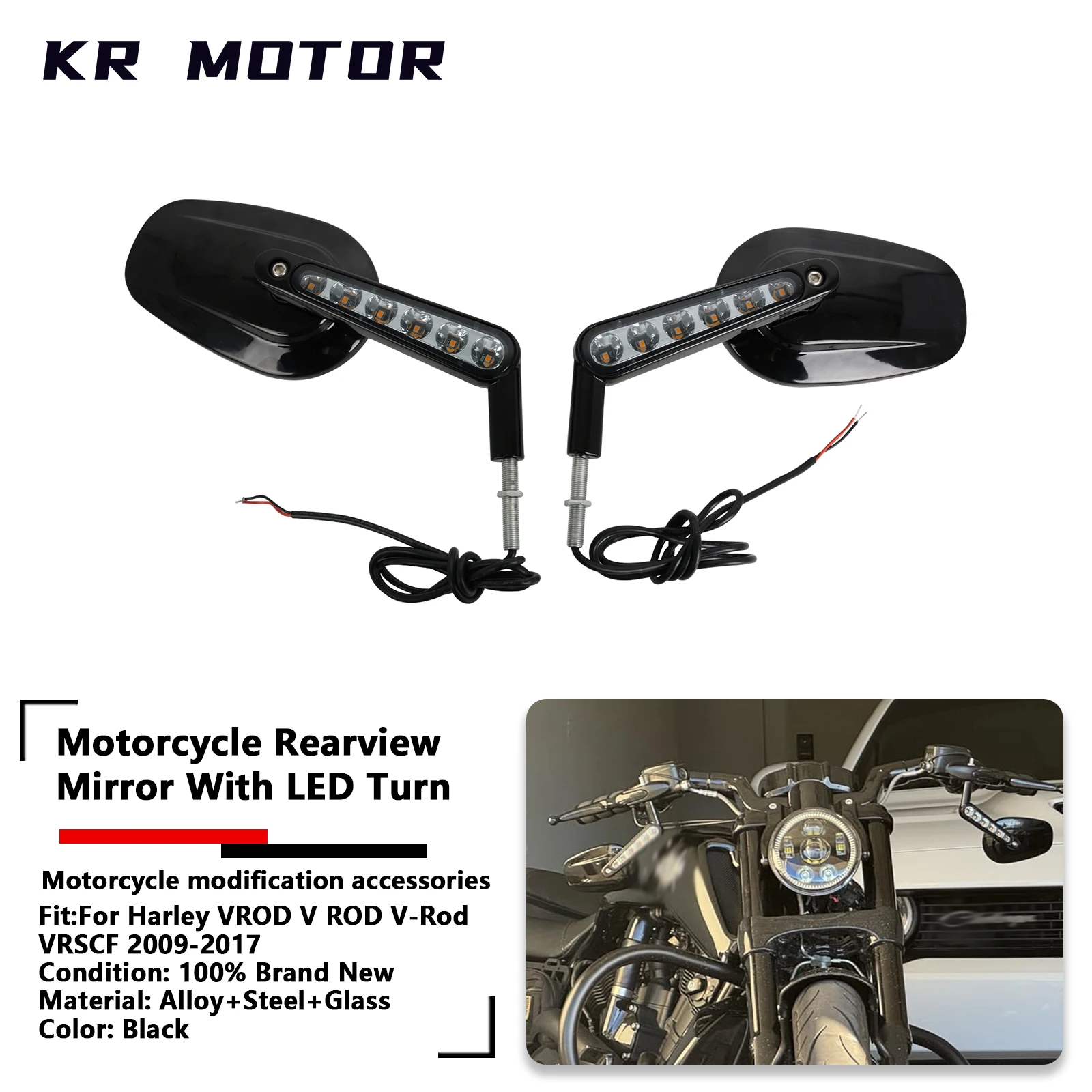 Motorcycle Rearview Mirror Driving Mirror LED Turn Signals Light For Harley VROD V ROD V-Rod VRSCF 2009-2017 2016 2015 2014 2013