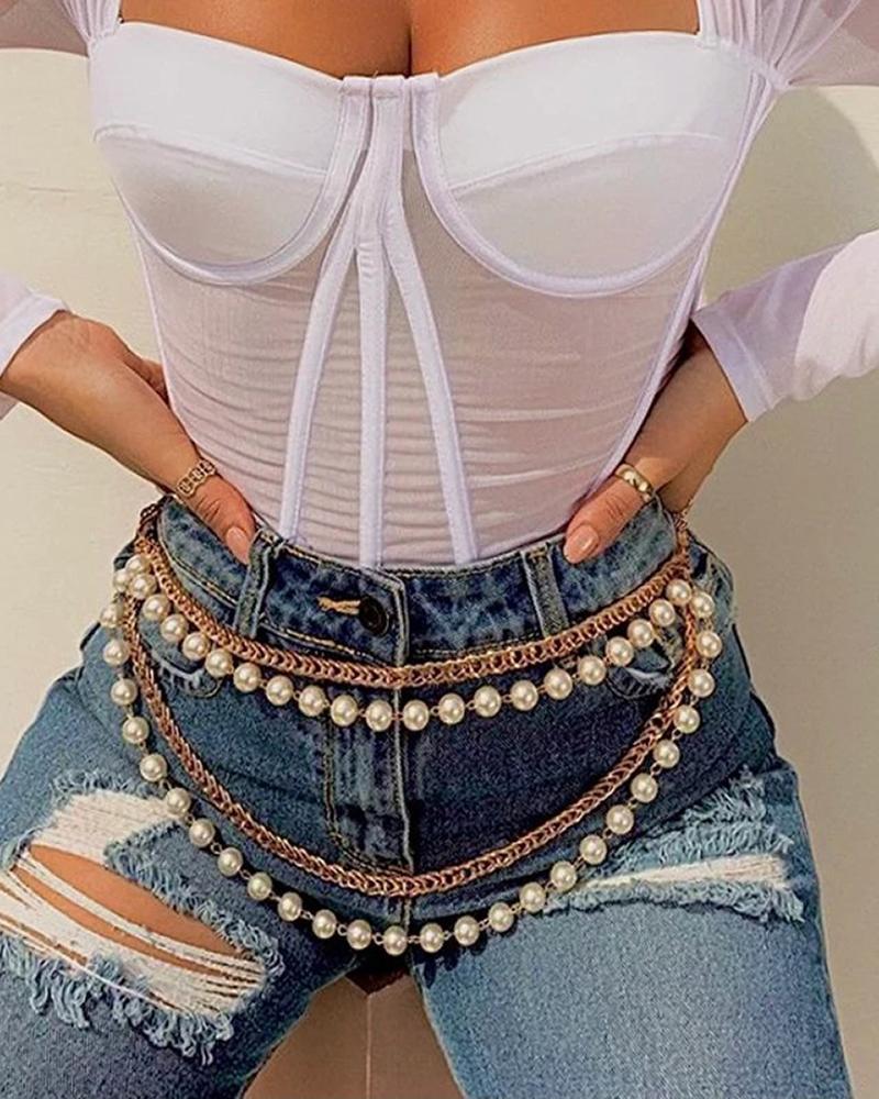 Multi Layered Beaded Waist Chain, Gold