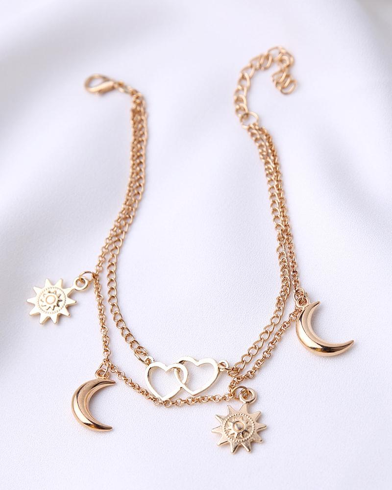 Multi-layer Heart Moon Sun Pattern Anklet, Gold