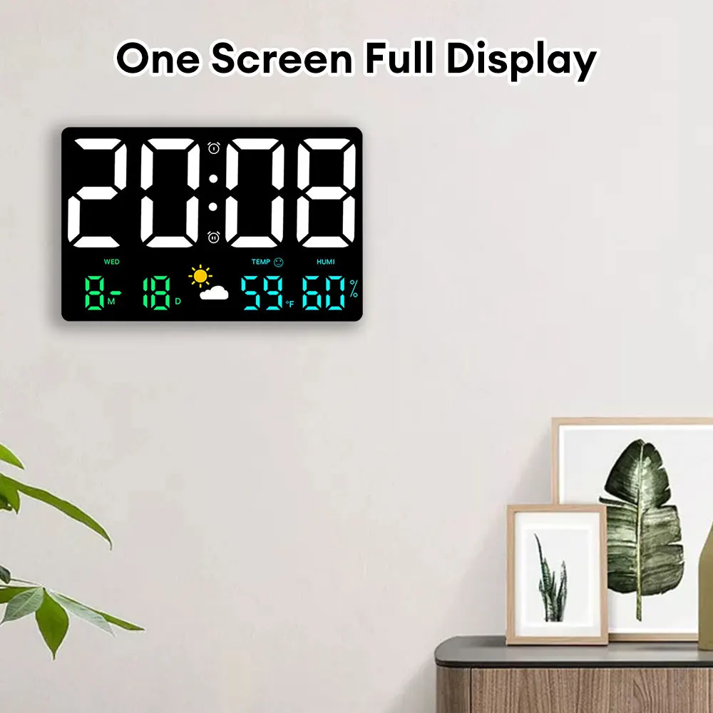 Multifunction Weather Clock Digital Wall Clock Date Week Temperature Humidity Display Electronic Alarm Clock 12/24H Table Clock