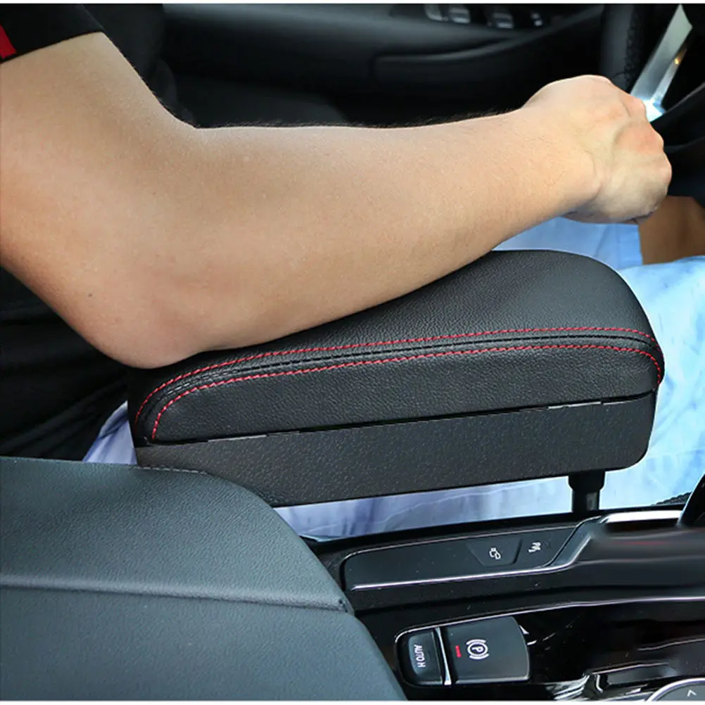 Multifunctional Adjustable Car Armrest Box Black Red Thread Auto Retractable Storage Case Elbow Support Pad Center Console Car