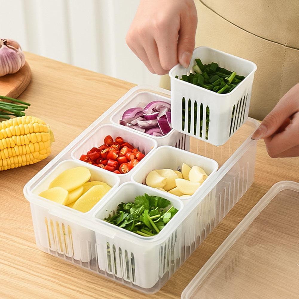 Multifunctional Drain Basket 6-grid Vegetable Fruit Gadgets Basin Containers 2-Layer Storage Box Kitchen Drainage Basket Wa G9X4
