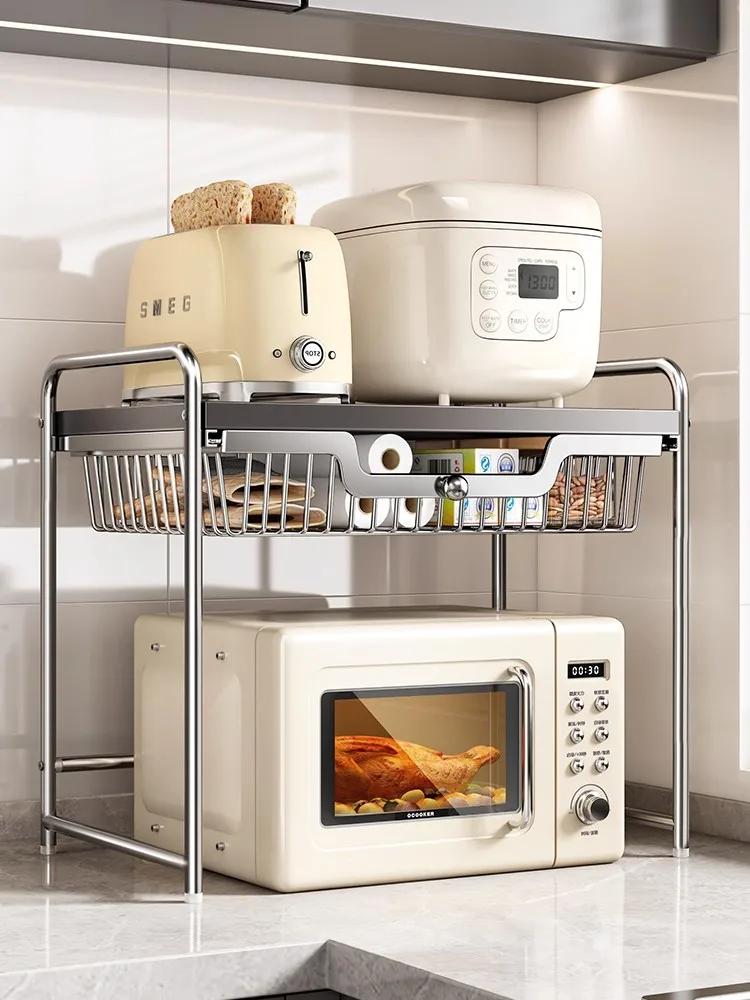 Multifunctional Kitchen Countertop Microwave Oven Ra Rice Cooker Retractable Stand Oven Storage elf Inteated D...
