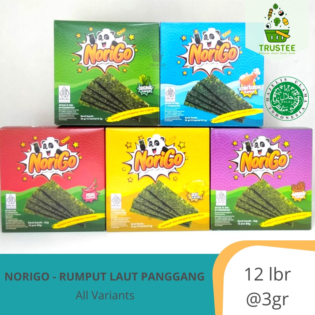 Murah.. NORIGO Nori Sachet / Seaweed Snack / Camilan Rumput Laut Sachet Halal 81
