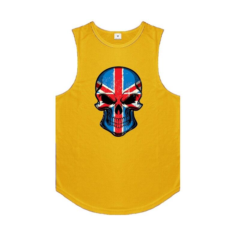 Muscleguys Молодежная популярная спортивная майка с принтом черепа Летняя шоу-мышечная жилетка для фитнеса Дышащая футболка без рукавов Мужская майка для бодибилдинга XXL жёлтый