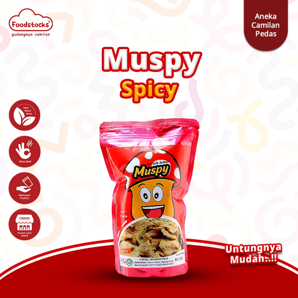 Muspy - Keripik Jamur Tiram Rasa Spicy dibumbui dengan racikan pedas khas. Hadir sebagai pilihan camilan sehat yang menggugah selera, cocok untuk pecinta pedas dan makanan ringan alami.