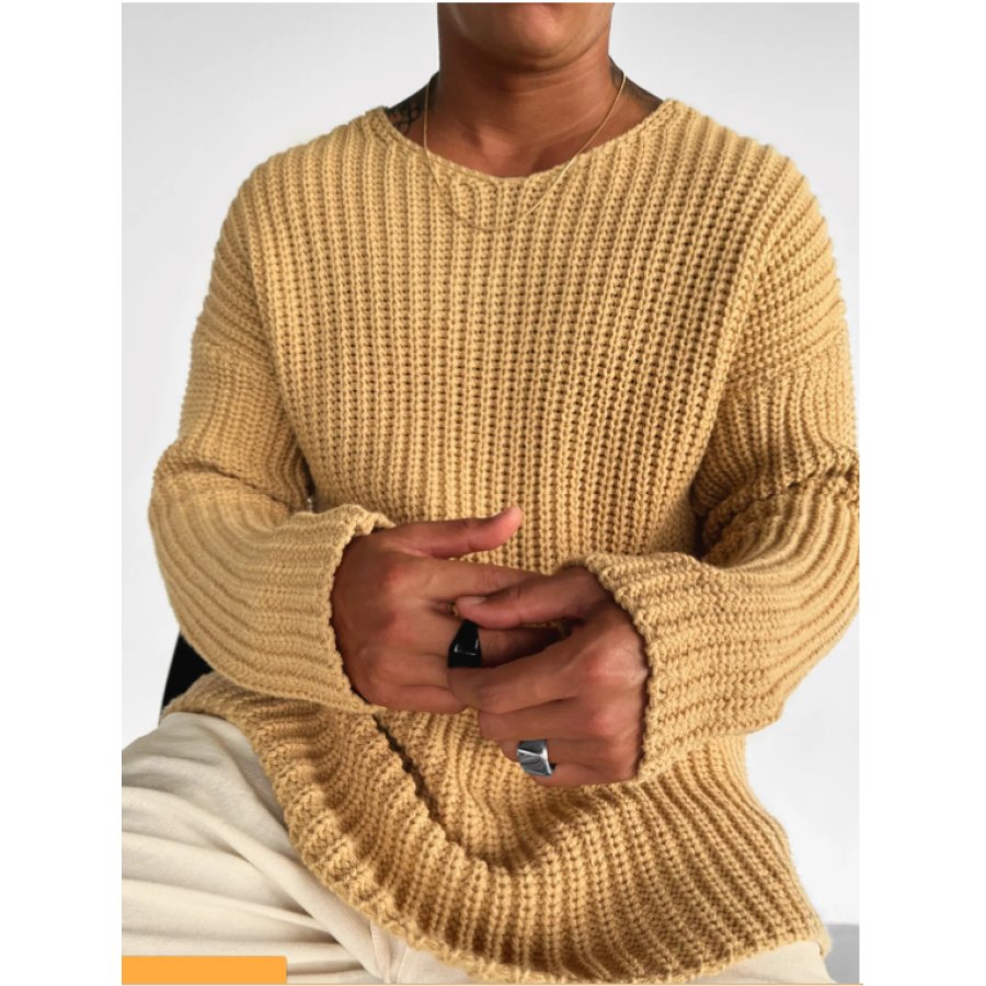 Mustard Men Street V Nect Regular Fit Open Knit Sweater